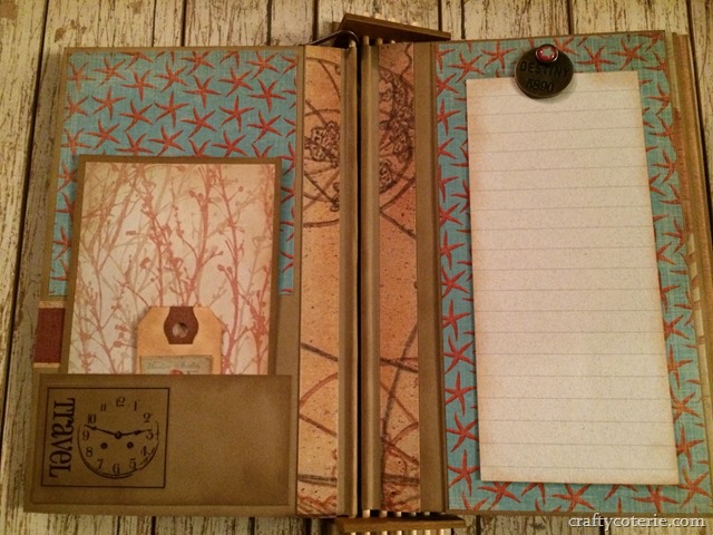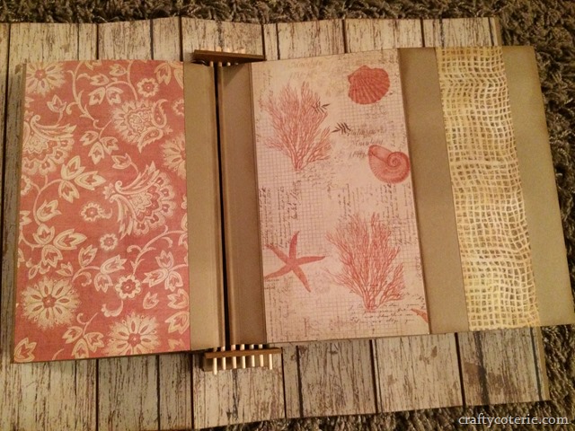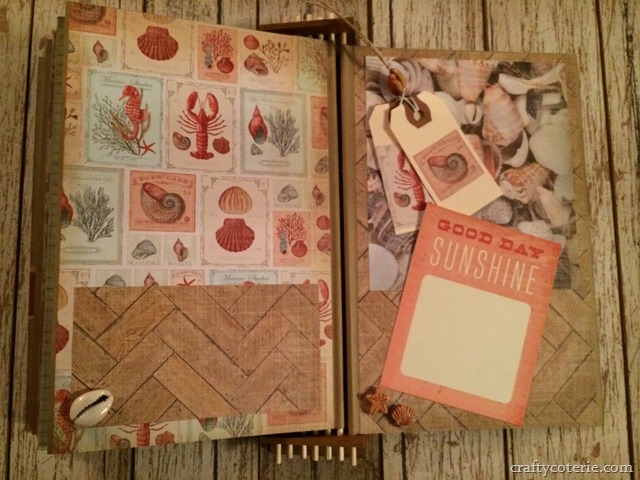 As much as I love all things Graphic45, I was hesitant about using the same collection Jim chose. Since this was a gift, I had to consider it’s recipient and felt that a more muted collection would be a better fit. Hobby Lobby to the rescue – I found the gorgeous Paper Studio Beach House paper stack in both 12×12 and 8×8. I knew this was the right one. Paired up with some fun things I’ve been collecting along the way, I ended up with a really beachy lighthouse and mini album.